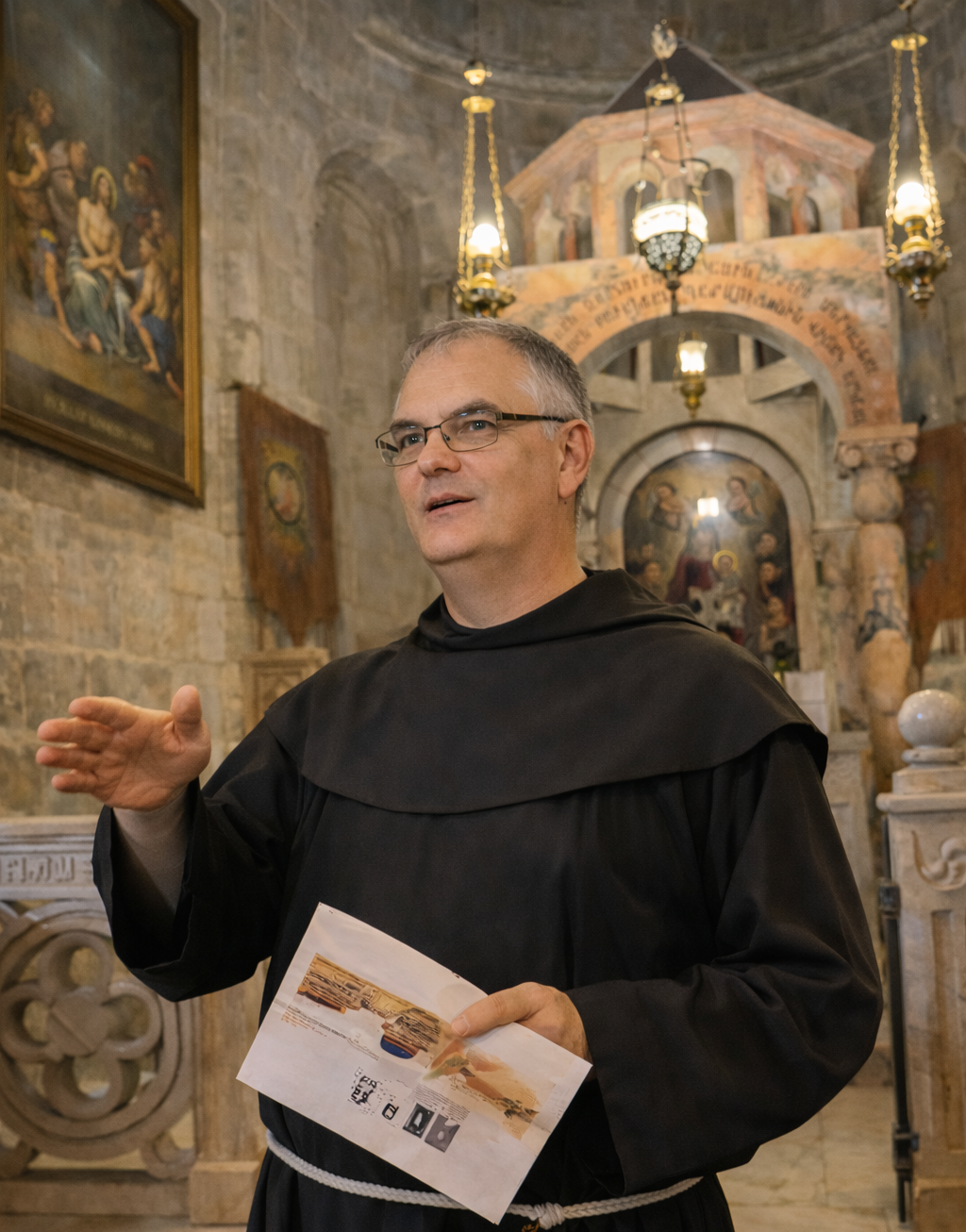 À travers une approche historique de la liturgie, le frère Stéphane proposera une analyse des équilibres — souvent fragiles — entre pratiques rituelles, usages immémoriaux et régulations institutionnelles. Le Saint-Sépulcre apparaît ainsi comme un laboratoire vivant où se donnent à voir, de manière particulièrement intense, les tensions entre unité du lieu saint et pluralité des expressions liturgiques.
